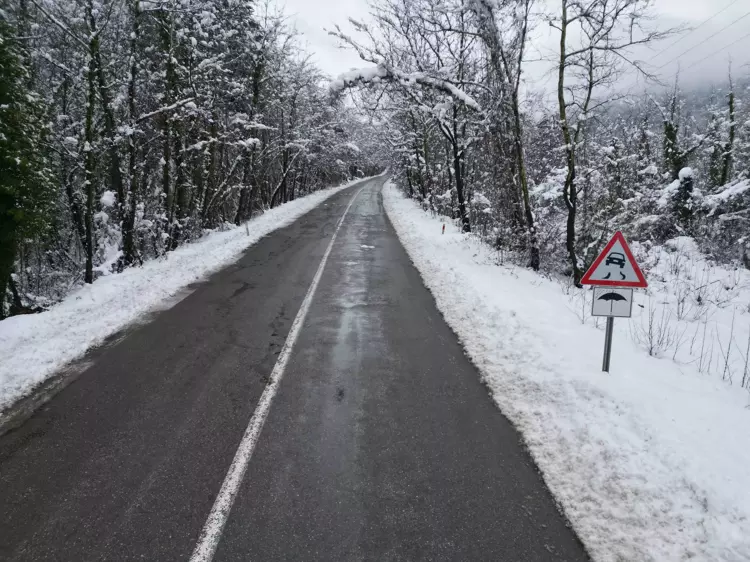 Bölgede gece başlayan kar yağışı sonrası yaklaşık 20–30 santimetreye varan örtü oluştuğu ve yolun bazı kesimlerinde araç trafiğinin yavaşladığı bildirildi. Drone görüntüleri, ağaçların üzerinde biriken kar tabakasının yol üzerinde kubbe benzeri bir tünel efekti yarattığını gösteriyor.