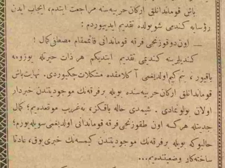 20 Ocak 1915: Mustafa Kemal’e tümen komutanlığına atanma bildirimi (atama belgeleri).