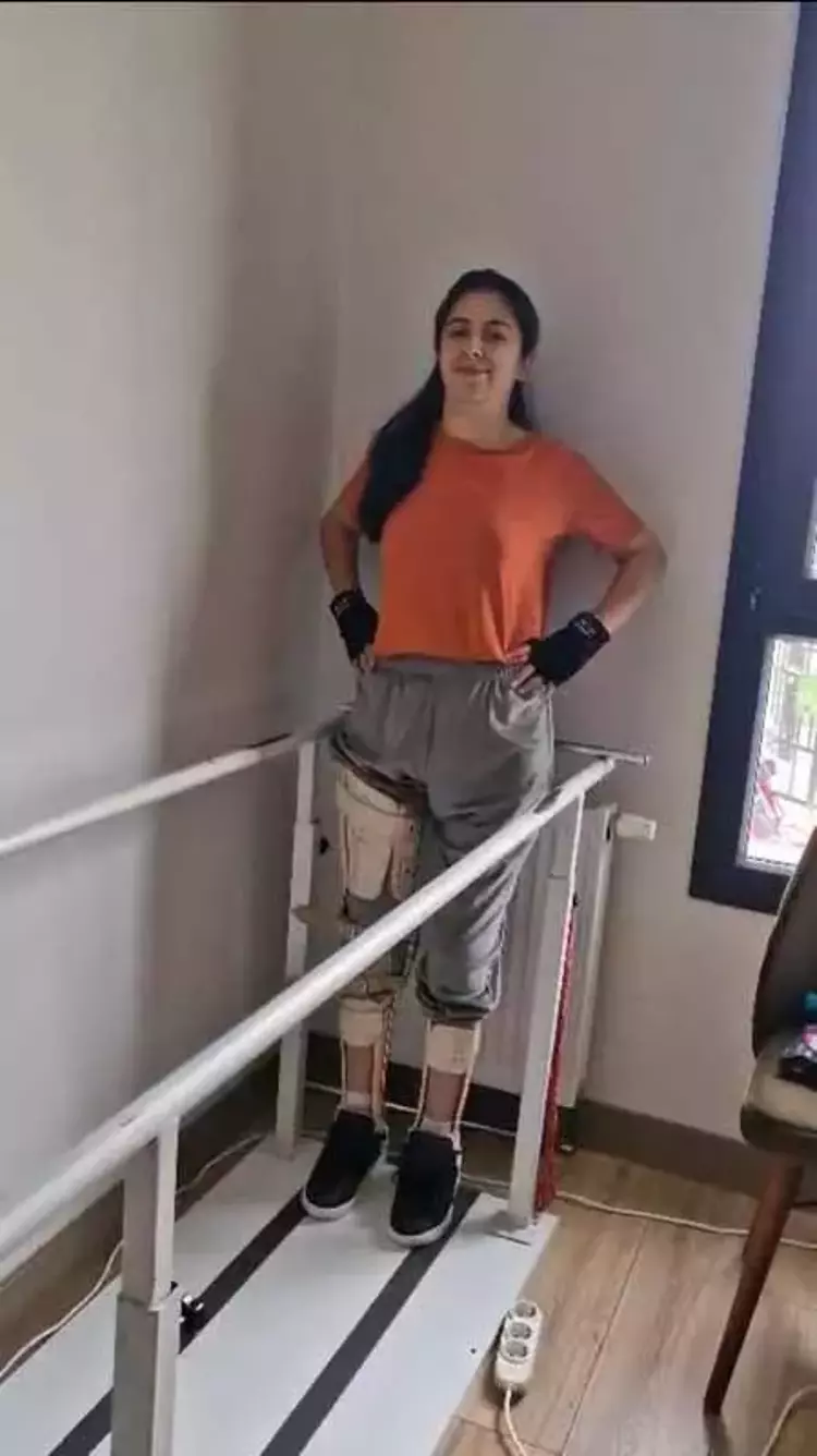 Depremde omuriliği ezilen Cansu, 3 yıl sonra ortezle ayağa kalktı