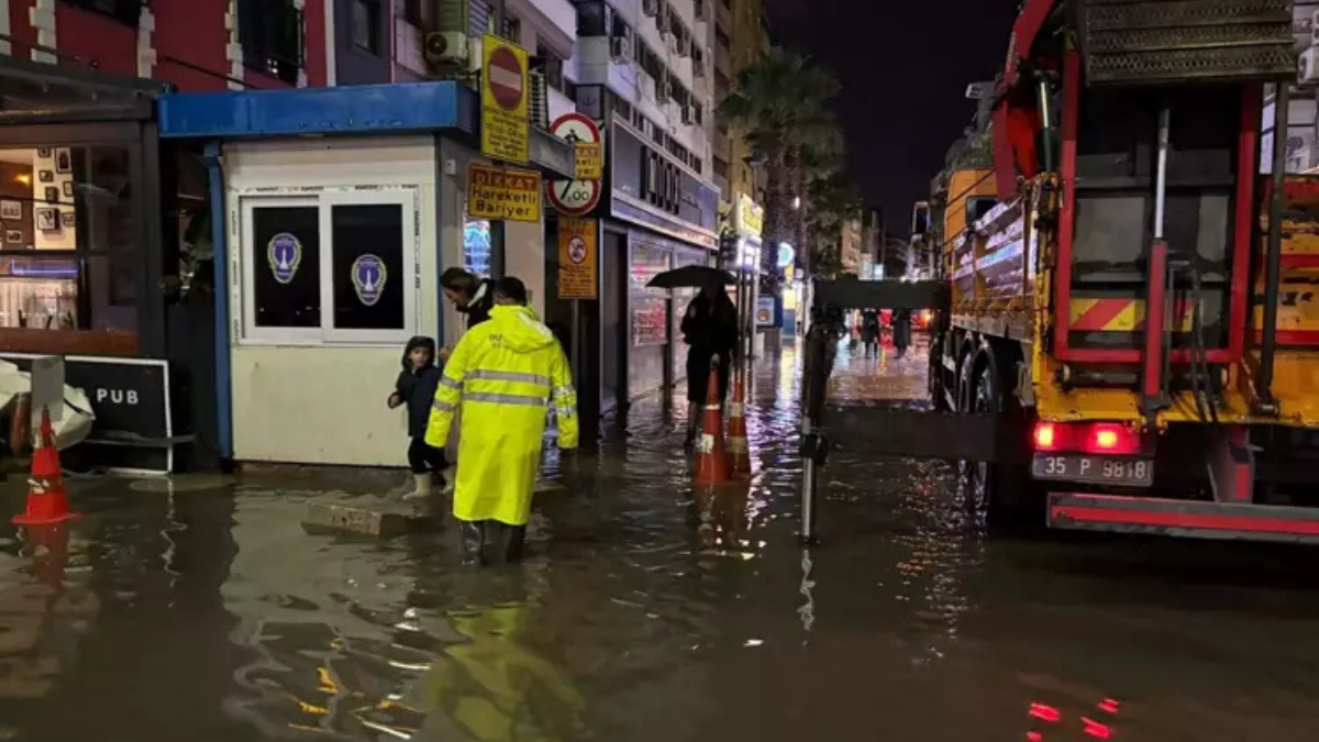 Gün boyu etkisini gösteren kuvvetli sağanak nedeniyle İzmir’de birçok cadde ve sokakta su birikintileri oluştu; bazı noktalar göle dönerken sürücüler trafikte ilerlemekte güçlük çekti. Belediye ve itfaiye ekipleri tahliye ve rögar açma çalışmalarına yoğunlaştı.