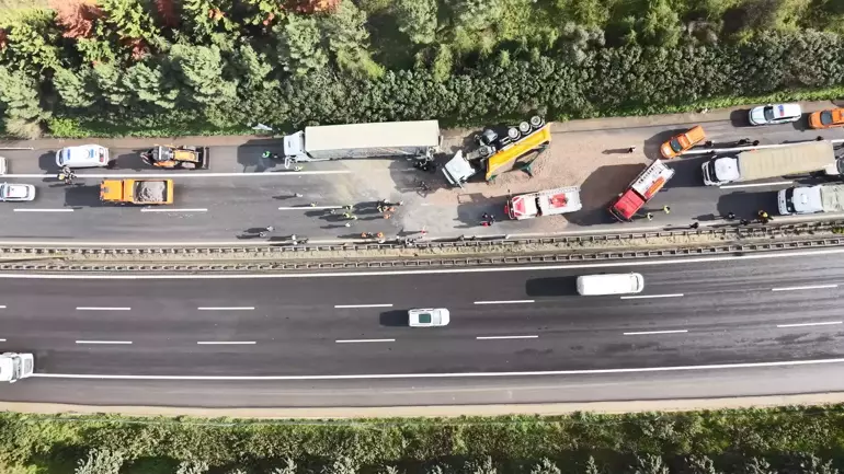 TEM’DE ZİNCİRLEME KAZA: 2 TIR, TANKER VE OTOMOBİL ÇARPIŞTI – 2 ÖLÜ