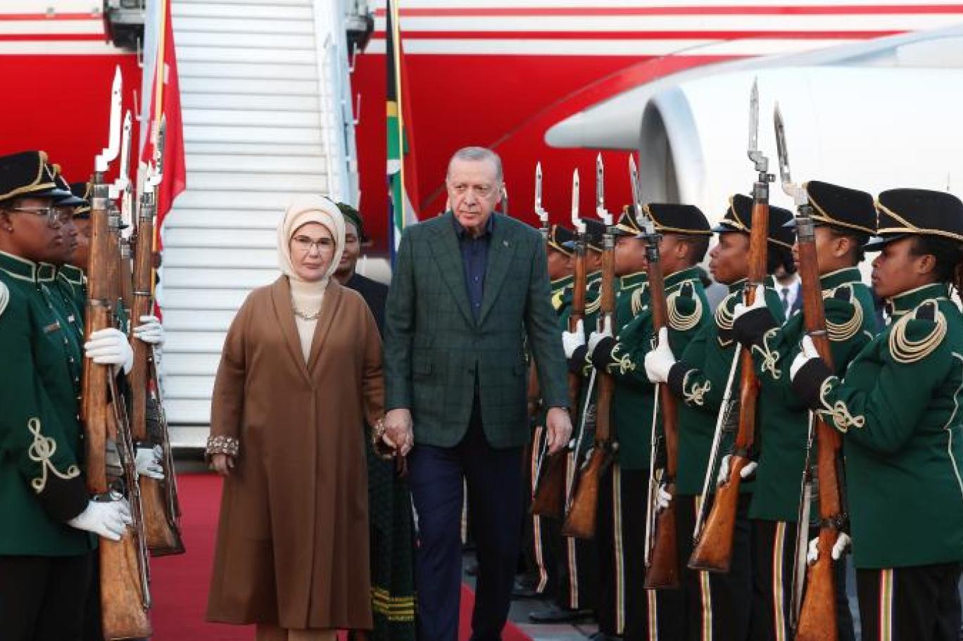 Cumhurbaşkanı Erdoğan, beraberindeki üst düzey kabine üyeleri ve heyetle birlikte Johannesburg’a iniş yaptı. Cumhurbaşkanlığı yetkilileri, Erdoğan’ın iki günlük zirve gündemi kapsamında hem oturumlara katılacağını hem de bir dizi ikili görüşme gerçekleştireceğini bildirdi