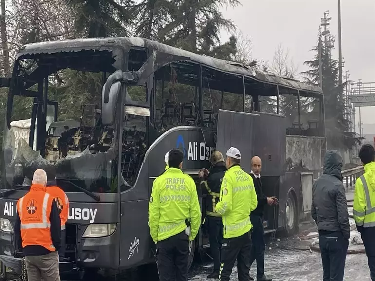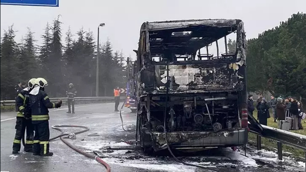 : Gebze D-100 kara yolu Terminal Caddesi kavşağında bugün sabah saatlerinde seyrederken alev alan şehirlerarası yolcu otobüsü, sürücünün hızlı müdahalesi ve itfaiyenin zamanında gelmesiyle yolcular tahliye edildi; araç kullanılamaz hale geldi