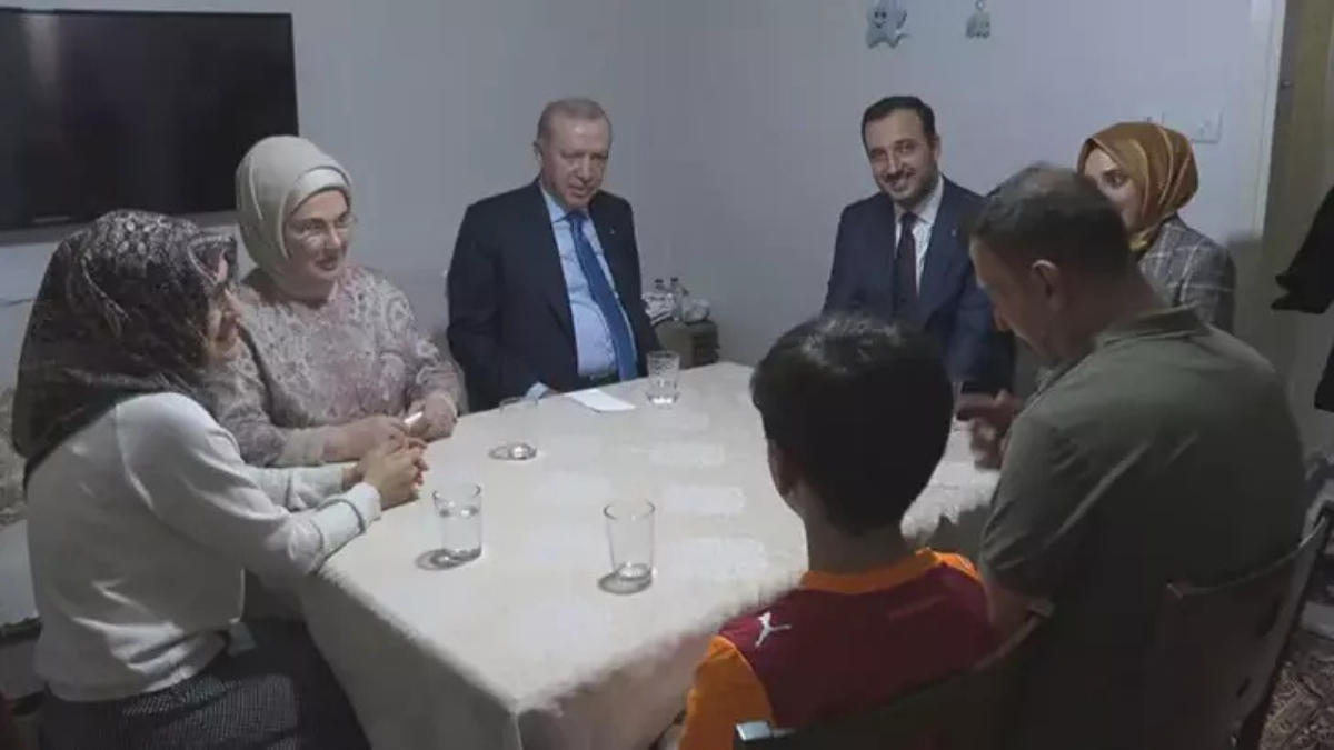 Emine Erdoğan ile birlikte Beyoğlu’na giden Cumhurbaşkanı, Kayacık ailesinin evinde kurulan iftar sofrasına katıldı. Sıcak sohbetlerin yaşandığı ziyarette Erdoğan, aile fertlerinin ramazan dileklerini dinledi; evden ayrılırken kapıda bekleyen vatandaşlarla da kısa sohbet edip hatıra fotoğrafı çektirdi.