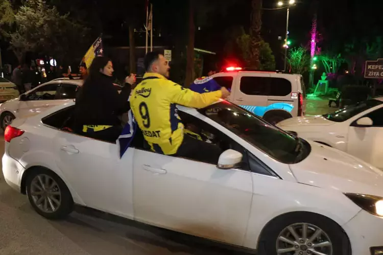 Fenerbahçe’nin Süper Kupa’yı kazanmasının ardından Antalya’da sarı-lacivertli taraftarlar coşkuyla sokaklara döküldü. Kültür Mahallesi Kafeler Caddesi ve çevresinde bir araya gelen taraftarlar otomobil konvoyları, bayraklar ve tezahüratlarla zafer sevincini kutladı; güvenlik önlemleri alındı.