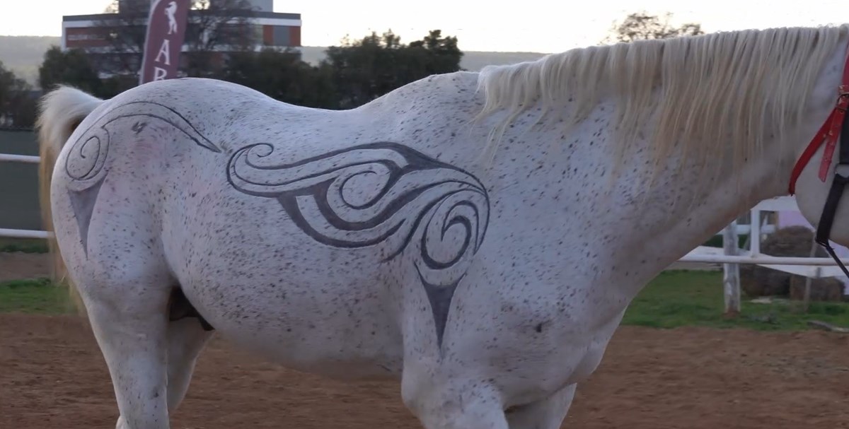 Denizli’de erkek kuaförlüğü yapan ve tribal kesim sanatıyla uğraşan Hüseyin Çaybaş, sosyal medyada gördüğü yabancı ülkelerde yapılan at üzerinde tribal kesimlerinden esinlenerek, Türkiye’yi de bu akıma dahil etti. Binlerce yıllık tribal kesim kültürünü at üzerine nakşeden kuaför Çaybaş, 4 saatlik çalışmayla at üzerine beğeni toplayan sanat eseri ortaya çıkarttı.