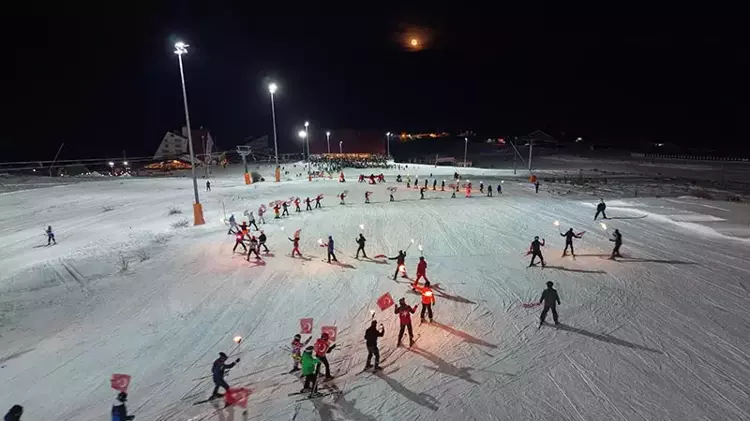 Açılış, profesyonel kayakçıların ellerinde meşaleler ve Türk bayraklarıyla dağdan inişiyle başladı. Gece karanlığında meşalelerin oluşturduğu ışık zinciri, izleyenlere unutulmaz görüntüler sundu. Gösterinin ardından katılımcılar halaylar çekerek coşkuyu paylaştı, havai fişek gösterisiyle de sezonun startı kutlandı.