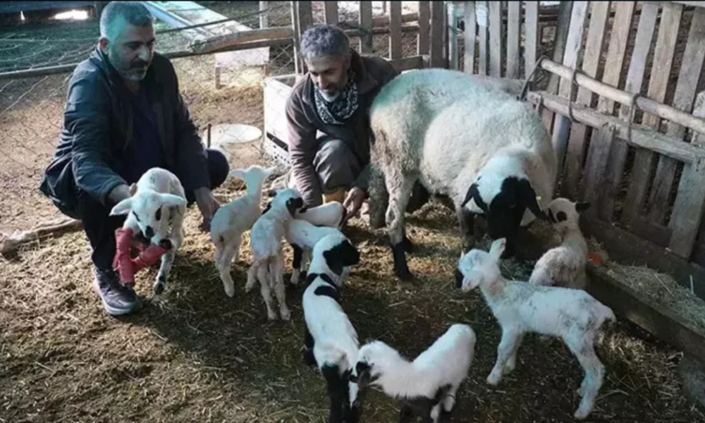 Denizli’de koyun tek batında 9 yavru doğurdu