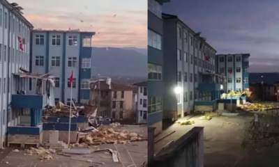 DÜZCE’DE ŞİDDETLİ RÜZGAR LİSENİN ÇATISINI UÇURDU: EĞİTİME YARIN ARA VERİLDİ