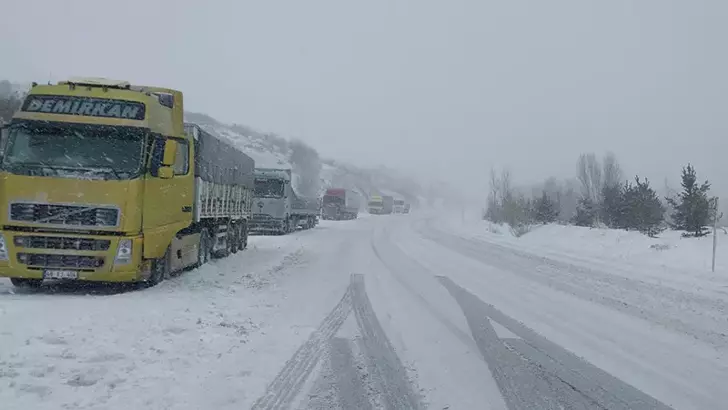 Tokat’ta sabahtan beri yüksek kesimlerde etkili olan kar yağışı, ulaşımı olumsuz etkiledi. Tokat-Sivas kara yolu Çamlıbel mevkisinde yoğun yağış nedeniyle çok sayıda TIR ve kamyon yolda kaldı.