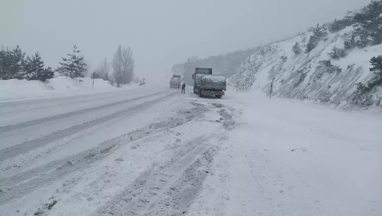 Tokat-Sivas kara yolunda kar yağışı nedeniyle ulaşım aksadı