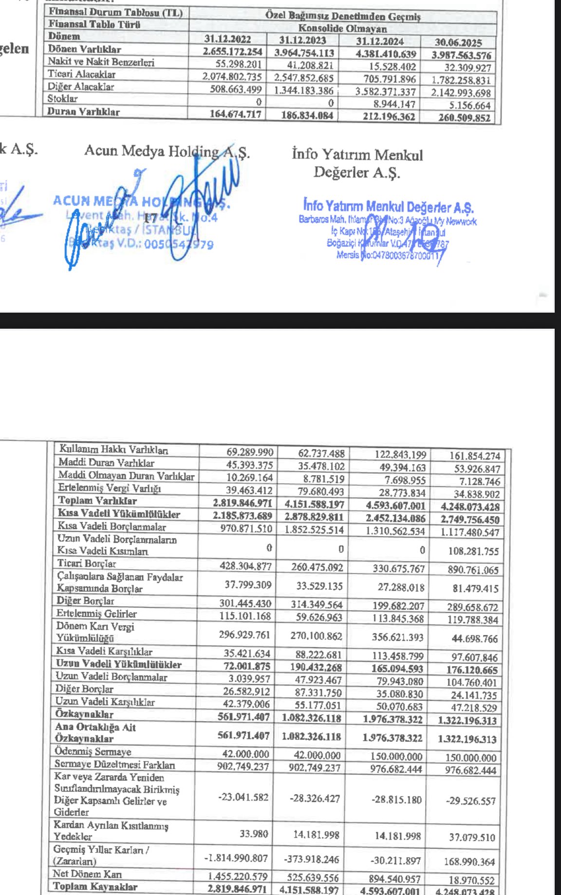Şirket bilgileri (KAP kaydı): TV8 TV Yayıncılık A.Ş. — merkez: Kağıthane / İstanbul.