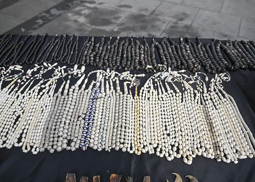 Aynı baskınlarda timsah tahniti ve timsah eli/trofesi, ceylan postu, piton derisi, timsah dişi, aslan pençesi, yaban keçisi kafatası, kurt dişi, fil ve balina dişi parçaları ile caretta caretta kabuğundan ve geyik boynuzundan yapılmış tespihler ve çeşitli boyutlarda tahnit (doldurulmuş) hayvan postları ele geçirildi. Birçok öğenin uluslararası koruma listelerinde olduğu, yasa dışı ticaretinin hem ekosisteme hem de kültürel mirasa zarar verdiği vurgulanıyor.